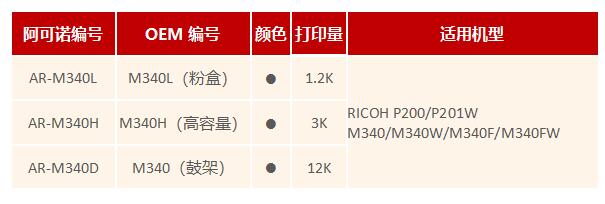 高品质打印耗材制造商:广州欣彩电脑耗材有限公司,推出适用于理光全新激光打印机粉盒和鼓架:标准容量粉盒M340L(1200页)、高容量粉盒M340H(3000页)和鼓架M340(12000页)此系列粉盒和鼓架适用于理光最新推出的黑白激光打印机P200 / P201激光一体机M340 / M340W / M340F / M340FW而且该系列新品机型均采用鼓粉分离技术可以单独换碳粉盒或者更换鼓架凭借对市场的快速反应精心投入研发,广州欣彩推出此系列机型标准容量及大容量粉盒和鼓架可满足不同用户的打印需求,让您在后期使用中大大降低打印成本。