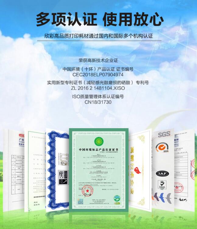 广州欣彩电脑耗材有限公司是一家集研发、制造、销售为一体的高新技术企业。凭借优异的产品品质和良好的品牌口碑获得了广大客户的高度认可。多年来新品研发上不断加大投入、不断突破。凭借快速的市场反应,新品推出迅速,已推出了多款全新通用碳粉盒。产品从原料到出品,每道工序都经过严格检测和把控,产品100%在线上机测试,质量稳定、品质保证。